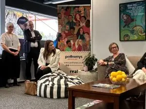 Wise Trust Chair, Julie Nelson, and Wise Group Chief Executive, Shelley Campbell led a tour of the building, where Min Willis connected with teams and leadership from The People’s Project, LinkPeople, Workwise, Pathways, Real, Te Pou, Blueprint for Learning, Just a Thought, and Wise Management Services.